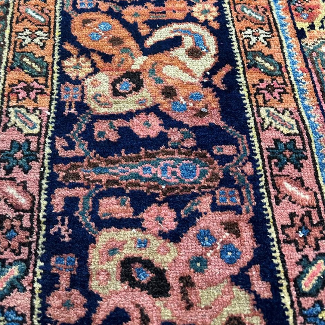 Woven in the weaving centers of Persia, likely in the Mahal or Sultanabad regions, this rug reflects the distinctive weaving traditions of the area. These regions have a long and storied history of carpet weaving, with each developing its own unique style and patterns. This antique rug, estimated to be over 100 years old, carries the legacy of generations of Persian weavers.