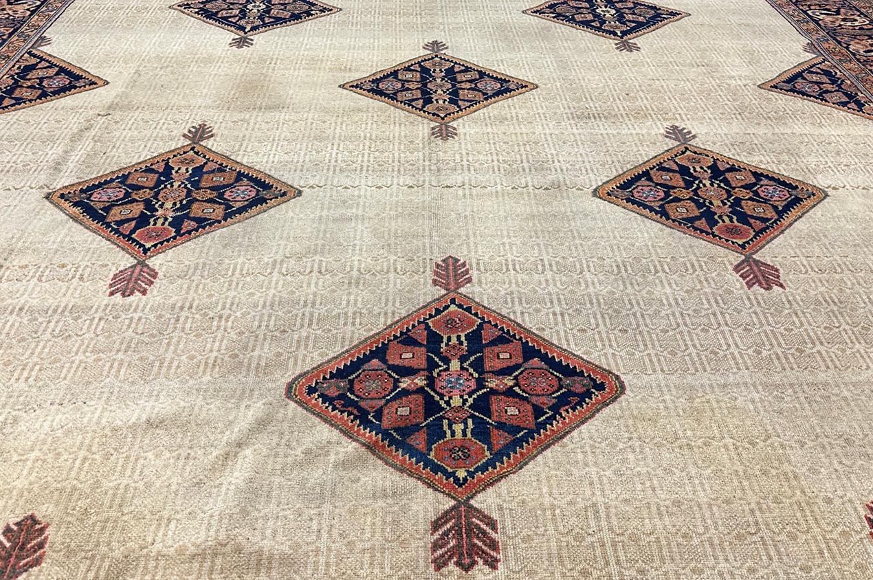 This captivating Persian village rug is a testament to the enduring artistry and cultural heritage of the Persian weaving tradition. More than just a floor covering, it is a window into the symbolic language and masterful craftsmanship of the weavers who created it, likely from the Bakshaish or Heriz region.