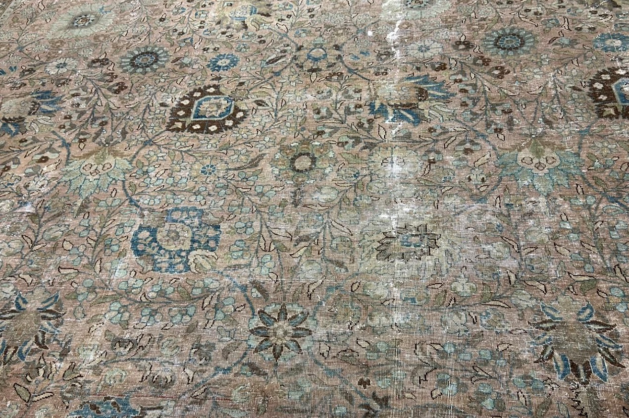 This exquisite Tabriz carpet is a masterpiece of Persian weaving, embodying the rich artistic heritage and masterful craftsmanship of the Tabriz region. More than just a rug, it is a testament to the enduring beauty and timeless elegance of Persian carpets.